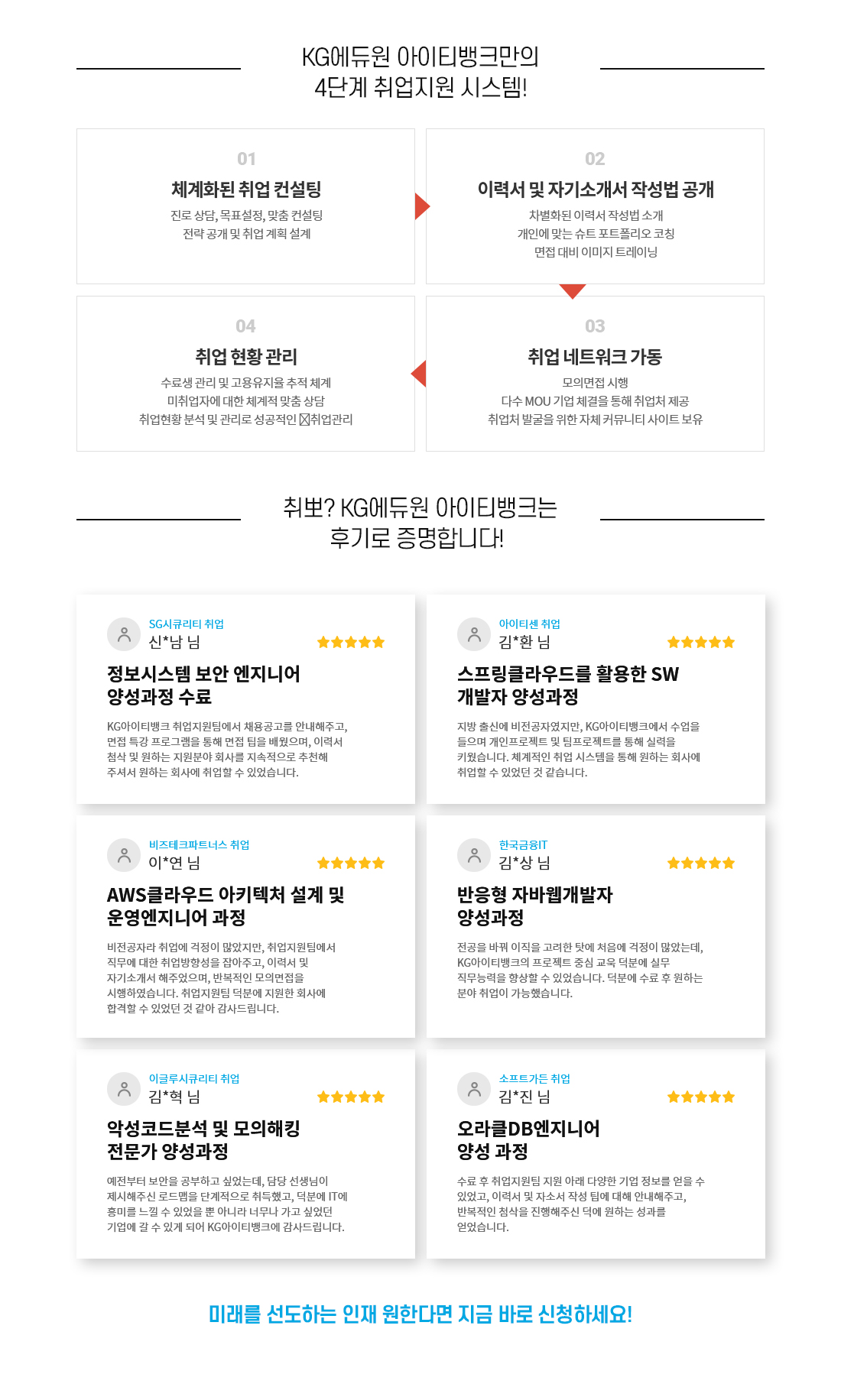 | 회원 유치 및 관리 | 3사업부, 5사업부, 더자라, 아이티잡고, 더패밀리, ㈜케이지아이티뱅크 평생교육원 |